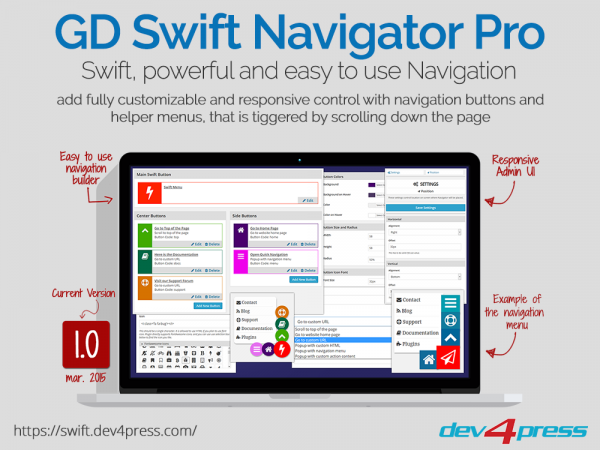 GD Swift Navigator Swift, powerful and easy to use Navigation, to add fully customizable control with navigation buttons and helper menus. Read More Free Close Dev4Press Buy now / Learn more